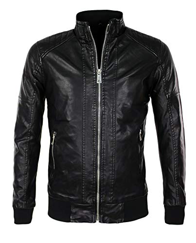 Evoga Giubbotto Giacca Uomo Eco Pelle Nero Casual Giubbino Corto con Zip (XXXL, Nero)