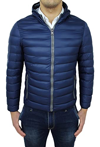 Evoga Piumino uomo Class invernale giubbotto giacca bomber con cappuccio (XXL, Blu Scuro)
