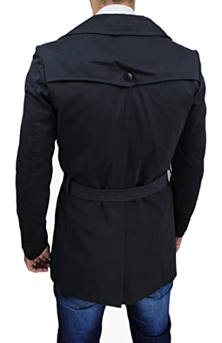Evoga Trench soprabito uomo Sartoriale giacca giubbotto casual elegante (Nero, XS)