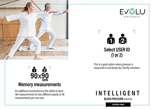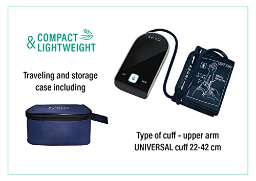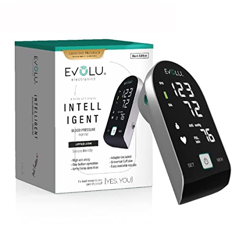 Evolu Misuratore di Pressione da braccio-automatico con funzione di memoria -misurazione del polso-cardiofrequenzimetro,rilevamento dell'aritmia-misura del bracciale universale-adattatore, Nero