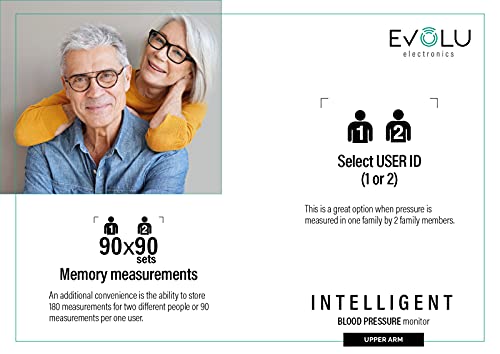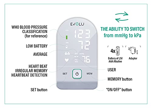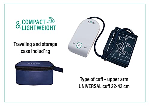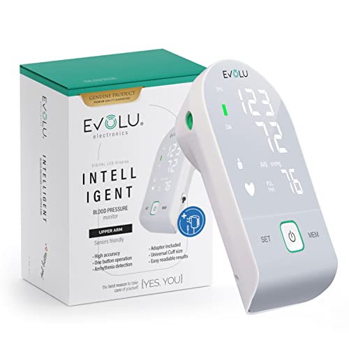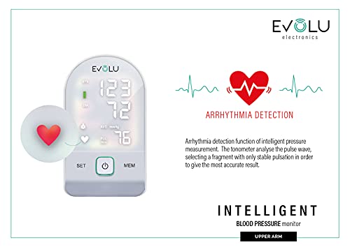 Evolu Misuratore di Pressione da braccio-automatico con funzione di memoria -misurazione del polso-cardiofrequenzimetro,rilevamento dell'aritmia-misura del bracciale universale-adattatore, Bianco