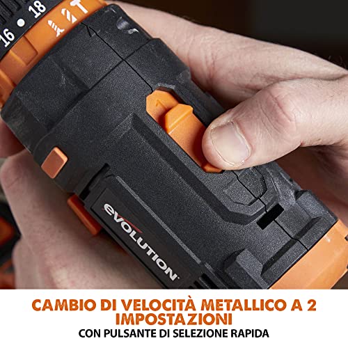 Evolution Power Tools R13CMB-Li Trapano combinato cordless con velocità variabile e cinghia con gancio, nero arancia