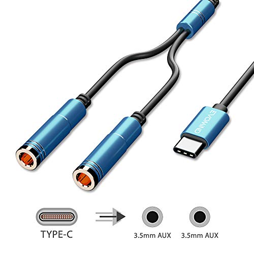 [ FUNZIONI AUDIO E MIC ] - Il cavo Splitter Type C Jack EVOMIND consente ad esempio di collegare due paia di auricolari o 2 cuffie con jack 3.5 mm ai dispositivi di interfaccia Tipo C sopra menzionati, che ti consente di condividere musica e film con altre persone. Mantiene la funzione del microfono e l'uso dei pulsanti multifunzione in Android tranne che con le auricolari Apple (controllo del volume impossibile).