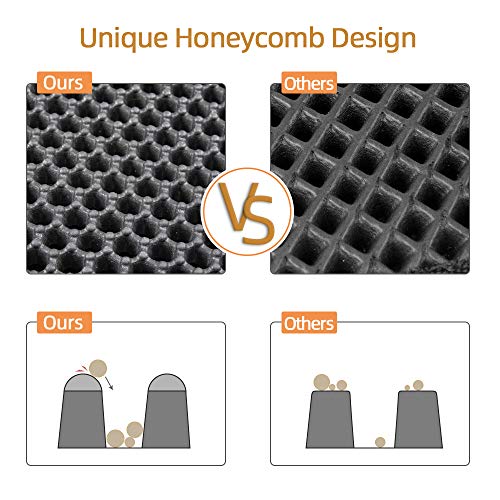 Design a nido d'ape: grazie al morbido design a nido d'ape e alla superficie strutturata, i chicchi di scarto vengono facilmente catturati dalle zampe. Cadono attraverso il secondo strato invece di essere spinti a terra. Risparmia tempo per la pulizia. Il tappetino è sicuro e durevole.
