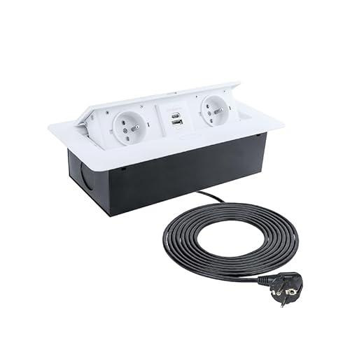 EVOTRADE Multipresa da Incasso a Scomparsa con 2 prese SCHUKO + 1 presa USB e 1 è presa USB C. Cavo da 3 METRI Per Scrivania, ufficio, sala riunioni, piano di lavoro (Bianco)