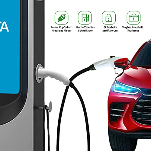 EVservice Cavo di ricarica per auto elettrica tipo 1 a spirale Mode 3 EV per veicoli elettrici EV e PHEV 3,7 KW a 7,4 KW per veicoli elettrici (1 fase 32 A 7,4 KW - 4 M)