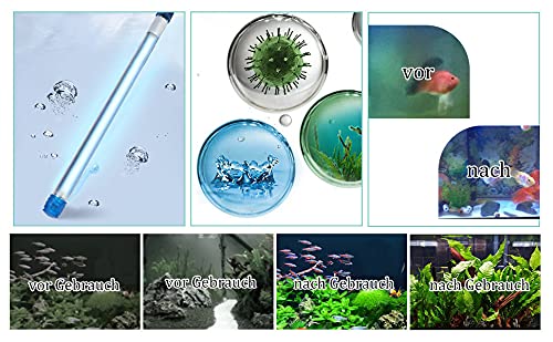 【Funzione potente】 : La luce con lunghezza d'onda di 254 nm aiuta a rimuovere il verde nella vasca dei pesci, nello stagno, per renderlo chiaro.Estremamente efficiente e consente di risparmiare tempo in 30 minuti, che può fornire un ambiente di vita pulito per i tuoi pesci. Questa sarà la scelta migliore per gli amanti del pesce.