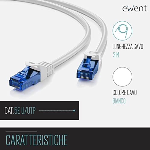 Ewent Cavo di Rete, Patch Cat 5e U/UTP, AWG 26/7, 2 Connettori RJ45, 3m, Bianco