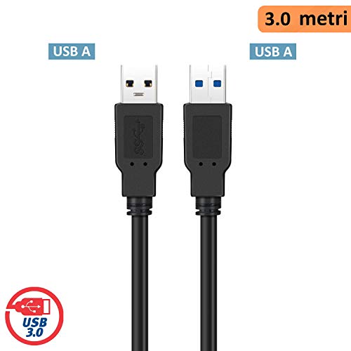 Ewent Cavo USB 3.0 Tipo A/Maschio a A/Maschio, Doppia Schermatura AWG 28 in Rame, Velocità di Trasferimento fino a 5GMbit, 3m, Nero