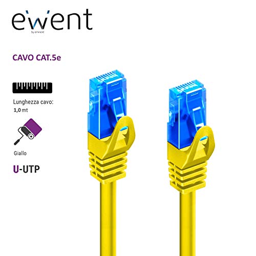 Ewent EW-5U-010Y - Cavo di Rete, Patch CAT 5e U/UTP, AWG 26/7, 2 Connettori RJ46, Giallo, 1 m, 1 Pezzo