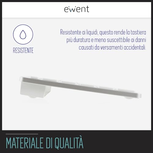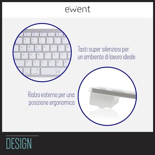 Ewent Ew3160 Tastiera Bluetooth 3 Keyboard Wireless Italiana Compatibile con Dispositivi iOS Come iPad, iPhone, Mac, Dispositivi Android e Windows Pc, Colore Argento/Bianca