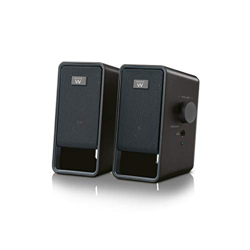 Ewent EW3504 Set Altoparlanti 2.0, 15W di Picco, Ingresso Stereo 3.5mm, Cuffie e Controllo Volume, Alimentazione AC, Nero