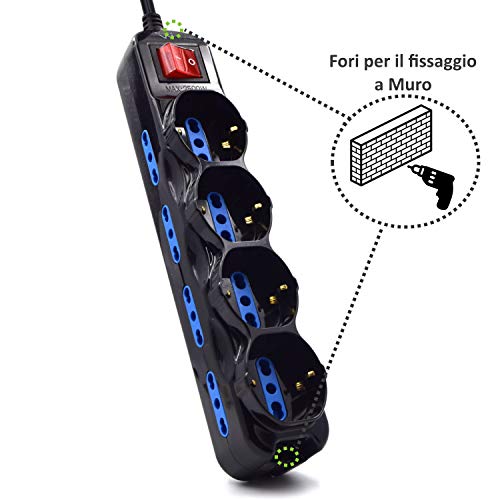 12 prese elettriche (4 universali ita 10/16a + schuko e 8 bipasso ita 10/16a) dotate di fori con protezione per bambini per alimentare allo stesso tempo dispositivi per la casa o l'ufficio