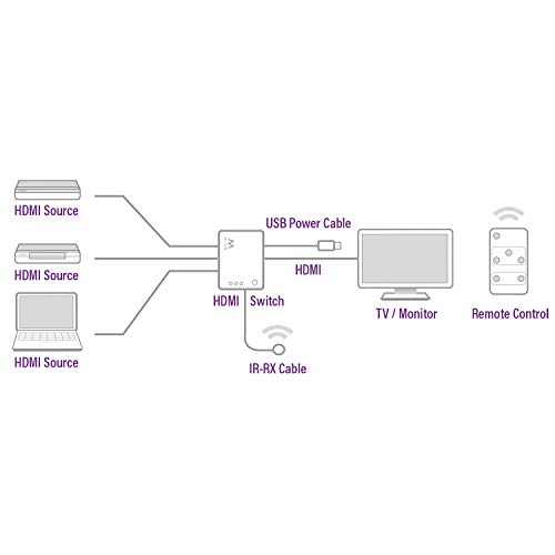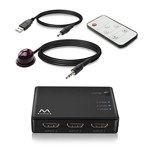 Ewent HDMI Switch, Switcher HDMI 4K 3 x 1 Commutatore HDMI 3 Ingressi 1 Uscita HDMI Switch 3 in 1 out HDCP 2.2 Compatibile 3D 1080P HD, con Telecomando (EW3730)