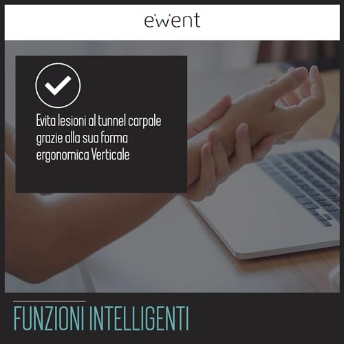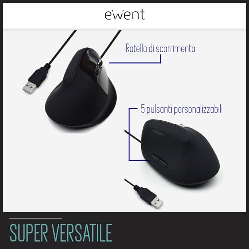 Ewent Mouse Ottico Verticale Ergonomico - 600/800/1200/1800 DPI - 5 Tasti - Previene il Disturbo del Tunnel Carpale - Colore: nero