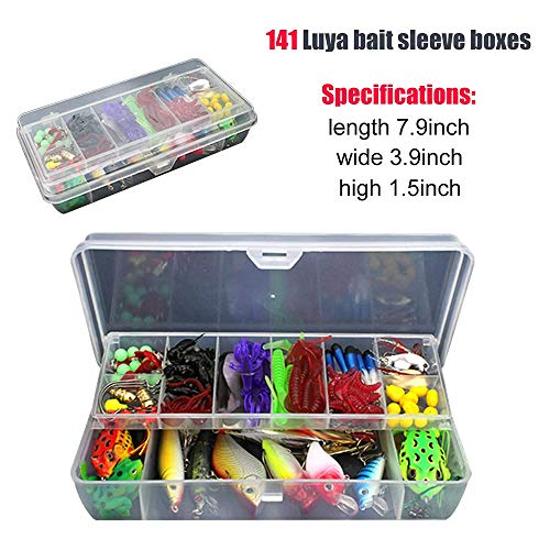Kit di esche da pesca da 141 pezzi - include diversi tipi di esche da pesca, ganci, testa jig, sinker, tappo per lenza, canna girevole, scatola per l'attrezzatura libera, un kit di esche per acqua salata e acqua dolce