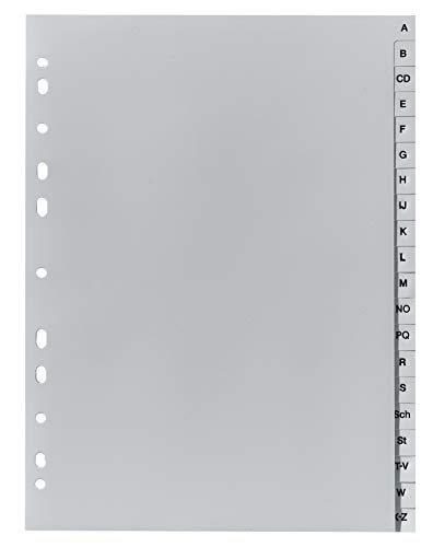 Divisori in polipropilene con stampa alfabetica in grigio, 20 posizioni, A-Z Deutsch, A4, in polipropilene, morbido e resistente agli strappi.