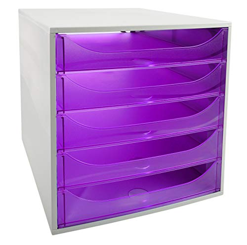Exacompta 229619D Cassettiere, Grigio/Viola Trasparente, 34.8 x 28.4 x 29