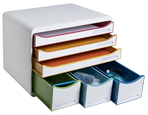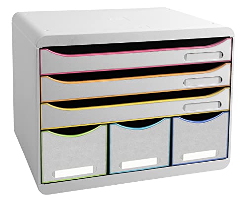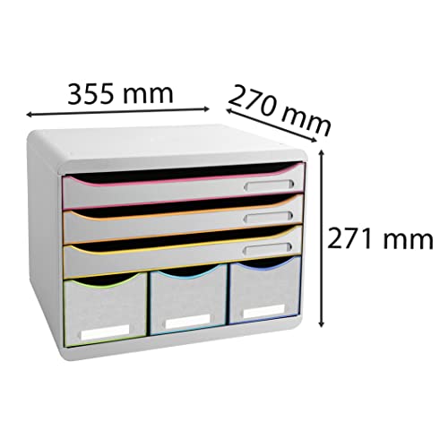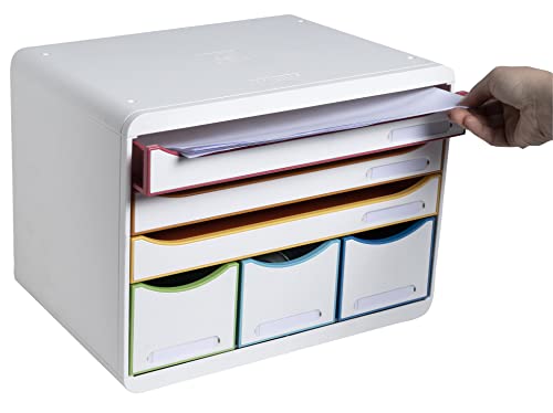 EXACOMPTA - Rif. 306913D - STORE-BOX - Cassetto 6 cassetti - 3 cassetti per documenti A4+ e 3 cassetti sottili - Dim esterno: profondità 27 x larghezza 35,5 x altezza 27,1 cm - bianco/argilla bianco
