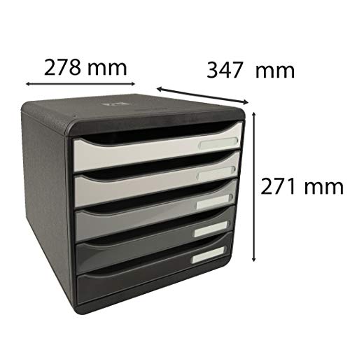 Exacompta 3097294D Cassettiera BIG-BOX PLUS SHADE OF GREY 5 cassetti aperti per formato fino a 24x32cm Dimensioni (LxAxP): 27,8x27,1x34,7cm Nero /Sfumatura di grigio glossy