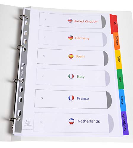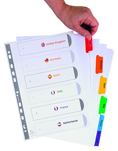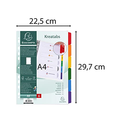 Exacompta - Rif 3206E - Divisori per documenti - Adatto per documenti A4, carta bianca 160 gsm, linguette colorate plastificate, preforate, certificate FSC, 6 sezioni