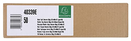 Exacompta 40339E - Scatola da 50 bobine per biglietti di carte di credito 57x40 mm, 1 piega termica 55g / m2 senza BPA, Lunghezza (+ o - 2 m): 18 m