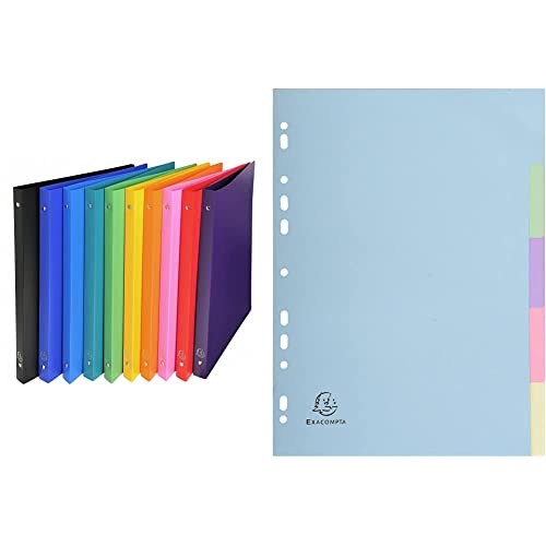Exacompta - 511999E - 1 Raccoglitore Opak - Polipropilene Opaco 0.5 mm - 4 Anelli Tondi 15 mm - Dorso 20 mm - F.to Esterno 25x32 cm per A4-10 Colori & 1605E Divisori e Segnaletica, 21x29.7 cm