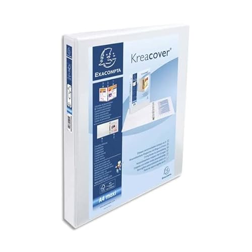 Exacompta - 51842E - 1 Raccoglitore Personalizzabile Kreacover - 4 Anelli a D 30 mm - Copertina Foderata PP con Tasca Fronte/Dorso/Retro - Dorso 47 mm - F.to Esterno 27.7x32 cm per A4 Maxi - Bianco