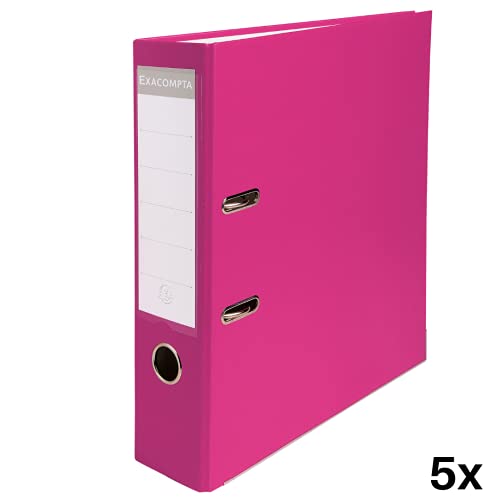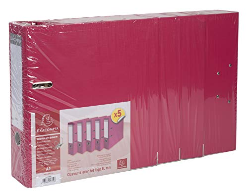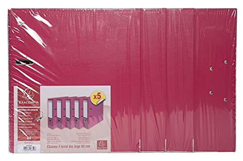 Exacompta - Rif. 53359SE - Raccoglitore meccanico Prem'Touch a leva - Adatto per documenti A4, dorso 80 mm, cartone rivestito in polipropilene - lampone (confezione da 5)