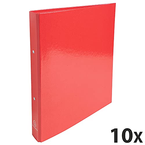 Exacompta - 549295E - Conf. da 10 Raccoglitori Foderati in Cartoncino Lucido Plastificato Iderama - 2 Anelli Tondi 30 mm - Dorso 40 mm - F.to Esterno 26x32 cm per A4 - Colore Rosso