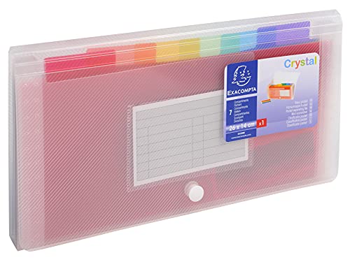 Exacompta 55398E - Classificatore 7 scomparti in polipropilene cristallo, 26x14 cm, Bianco Trasparente