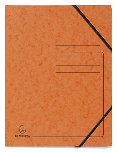 Exacompta 555414E Set di 5 cartelle con elastico senza lembi con stampa di righe sulla copertina per l'identificazione documenti in cartoncino lucido 355gm2 per archiviazione di documenti A4 arancione