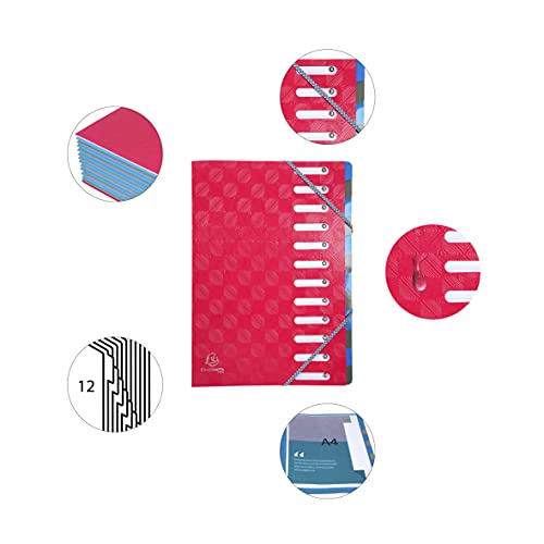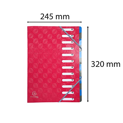 Exacompta 56224E Classificatore Harmonika 1928 con dorso estensibile 12 scomparti copertina in cartoncino lucido goffrato 600 gm², formato 24,5x32 cm per archiviazione documenti A4 Lampone