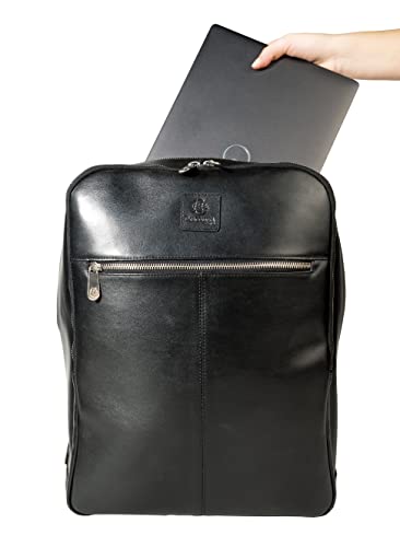 Exacompta 7637E Exactive, Zaino Per Computer Nera Per Laptop 15 Pollici e Tablet, Pelle di Vacchetta di Alta Qualità, Tasche Funzionali Per Riporre Vari Oggetti