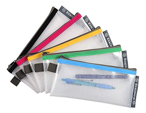 Exacompta - Tasche trasparenti in rete con cerniera, 8 x 18 cm, colori assortiti, confezione da 10
