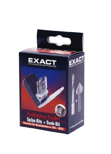 Exact 50905 - Set punte per trapano, 9 pezzi diametro 3-10 mm HSS con inserto per svasatura, diametr