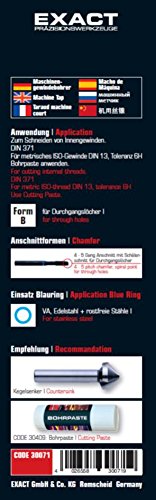 Exact, Punta per maschiatura a macchina M3 HSS-E, per acciaio Inox (VA) DIN 371 Fom B, 30071