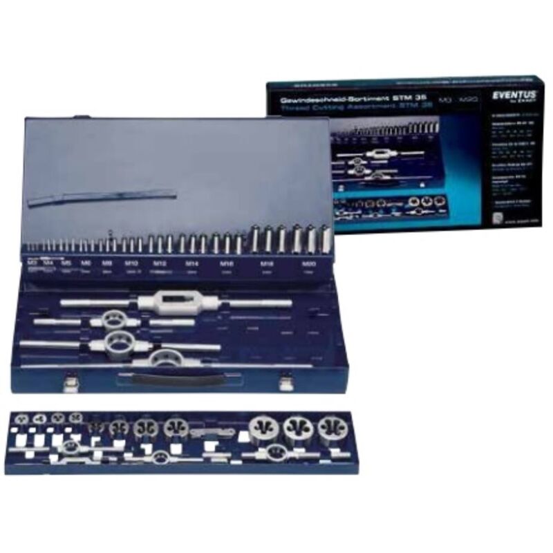 STM35 M3-20 HSS Eventus Assortment Assortment Tapping Assortment, 52-Piece I Assortimento di taglio del filo, Piano di cottura filettato a mano (PREA, PREA, CUTTATORE PREATORE) M3 - M4 - M5 - M6 - M8 - M10 - M12 - M14 - M16 - M18 - M20 • Taglio del ferro I circolare Circolare questo M3 - M4 - M5 - M6 - M14 - M10 - M12 - M14 - M16 - M12 - M14 - M16 - M12 - M20 • Portafiltro I detentore per circolare Questo 20x5 / 20x7 / 25x9 / 30x11 / 38x14 / 45x18 • Vento EIS I Tocca Wrench 1 + 3