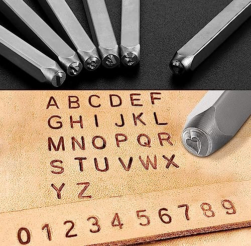 Exbrith 37 pezzi Numero Punzone Impostato 3mm, Set di Lettere Perforate, Alfabeto A-Z, Numero 0-9, Punzone Lettere Metallo, Numeri di Francobollo per Timbrare la Pelle di Legno di Plastica di Metallo