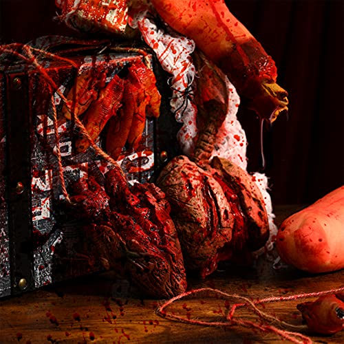 Design realistico: queste sono una varietà di oggetti di scena classici horror, organi umani falsificati sanguinosi e design spaventoso della mano e del piede sono ideali per creare scene come case infestate, cimiteri, feste di Halloween, ecc. Compatto e facile da riporre per un uso ripetuto.