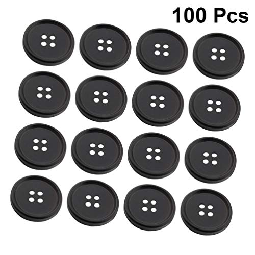 EXCEART Bottoni da 100 Pezzi Bottone Tondo in Resina Bottoni Piatti Neri da Cucire a 4 Fori per Sostituzione Bottoni Fai da Te Diametro 15Mm