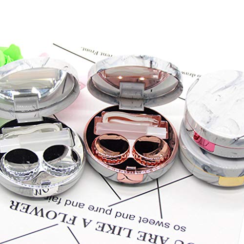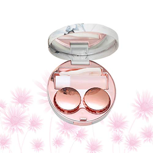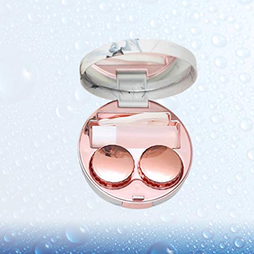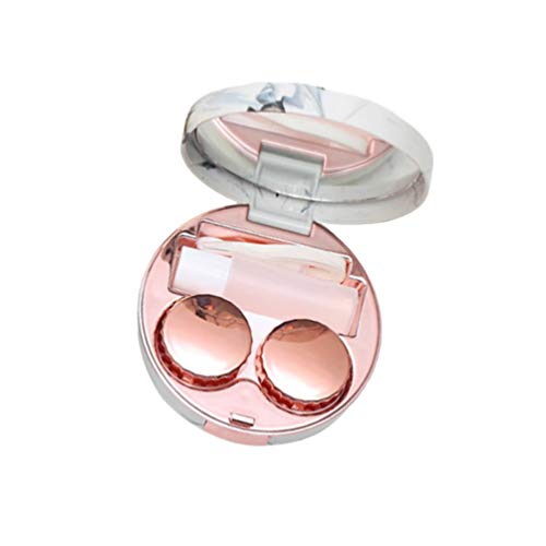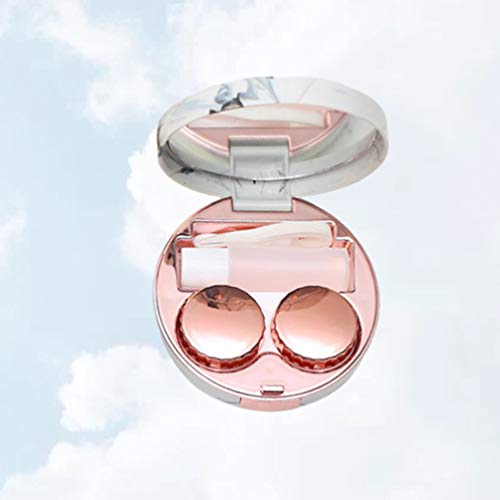EXCEART Custodia per Lenti a Contatto in Marmo Custodia per Lenti a Contatto Portatile Tasca Tascabile Kit Contenitore Lenti a Contatto Viaggio con Specchio Oro Rosa