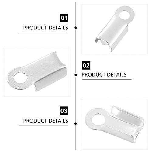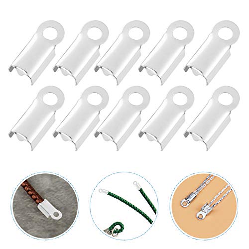 EXCEART 500 Pezzi in Acciaio Inox terminatori a Scomparsa terminali terminali crimpare, Cinturino in Pelle, Chiusura Finale per Gioielli, Accessori per la creazione di Gioielli, Colore Argento