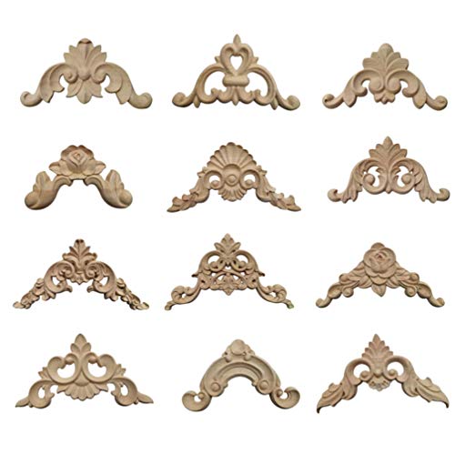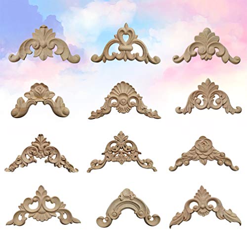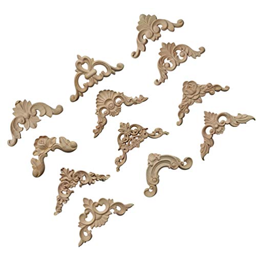 EXCEART 12 Pezzi in Legno Intagliato Angolo Onlay Applique in Stile Europeo Decalcomania Non Verniciato Decorazioni Mobili per Mobili Porta