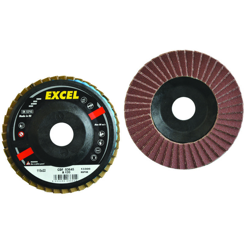 Disco abrasivo lamellare flessibile, ossido di alluminio (corindone), supporto plastica. Utilizzo su metalli, alluminio, bronzo, plastica, legno
