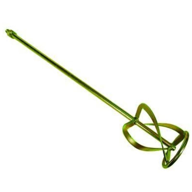 Frusta di miscelazione per mescolatori viscosi, in acciaio e con finitura zincata, è perfetta per la miscelazione di materiali come colle, intonaci, malte, stucchi, ecc. Ha alette piatte e larghe per una miscelazione progressiva ascendente, con flusso verso l'alto. Dati tecnici: attacco M14;