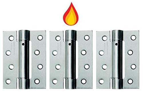 Excel 3 x Fire Door Hinges Single Action Residential Adjustable Self Closing Spring - Satin Chrome Plated by Discount Hardware UK
