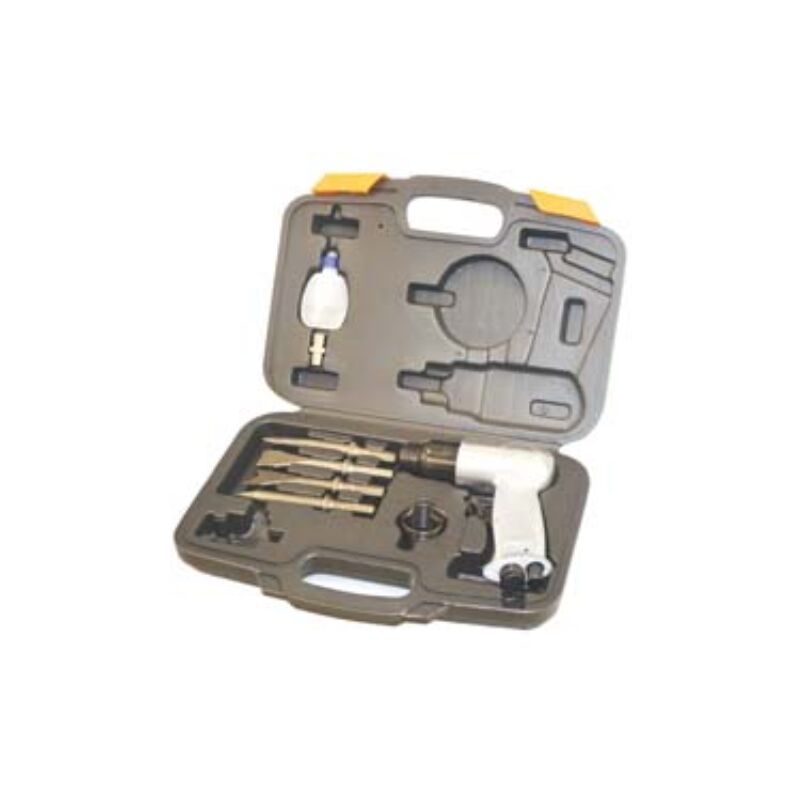 4 scalpelli da mm.125 con attacco esagonale - olio lubrificante - percussioni max 4.500 al minuto - attacco presa aria filettato da 1/4 gas - pressione aria di limentazione 6,3 bar - consumo d'aria 180 lt/min.- in valigetta Categoria merceologica: Compressori e accessori - Elettroutensili - Scalpelli pneumatici