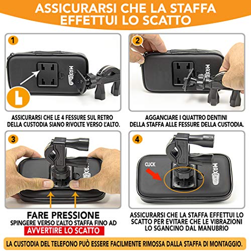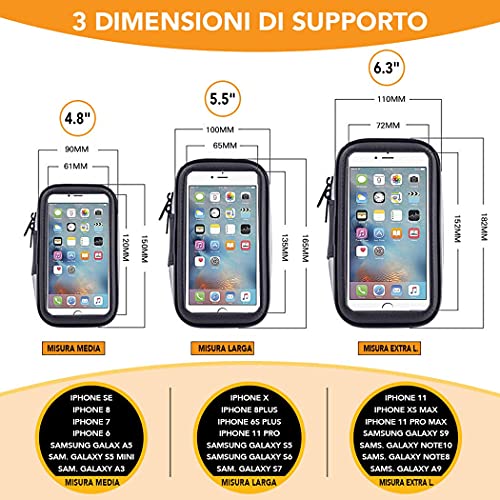 Max excell Porta Cellulare da Bici, Supporto Smartphone per Moto e Scooter Impermeabile con Touch Screen e Rotazione a 360, per iPhone e Samsung da 4,8 a 6,3 Pollici - Large