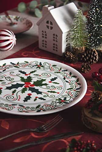Excelsa Christmas Holly Piatto Panettone, Porcellana, Diametro: 31 cm